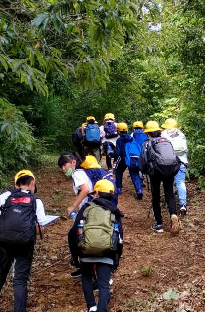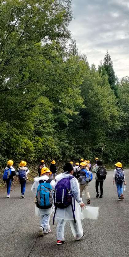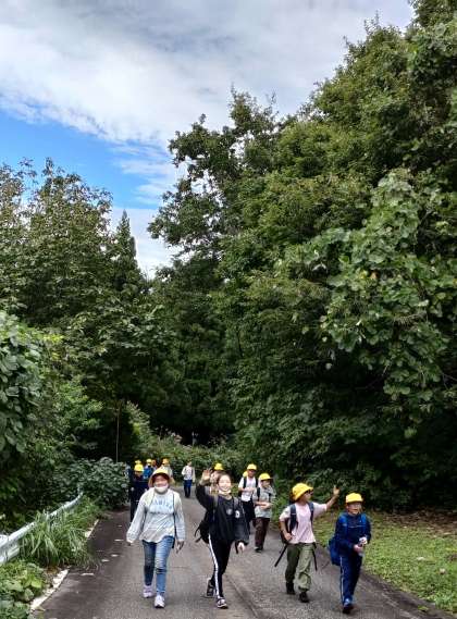 午後からは、オリエンテーリングに挑戦しています。30個のポイントのいくつを見つけることができるでしょうか。子供たちは、班のメンバーと協力しながら楽しそうに取り組んでいます。心配された雨も上がり、青空が見えてきました。自然を満喫しています。