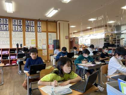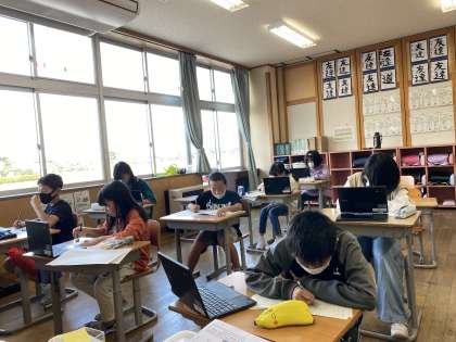 社会科の学習で調べた「食の安全について」をテーマに清流作文コンクールに出す作品を仕上げています。