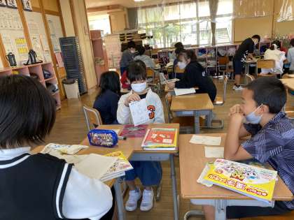 クイズを作ったあとは友達に出し合いました。「え、難しくない?」「ヒントちょうだい!」と、クイズを通して友達とたくさん関わっていました。