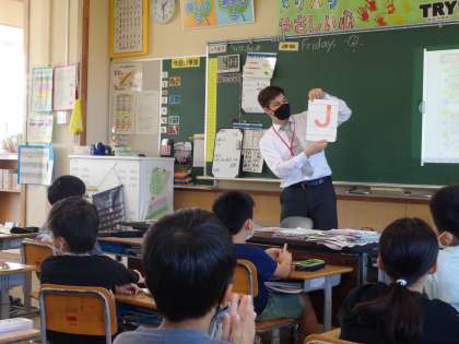 外国語では、アルファベットをコルトン先生と学習しました。
