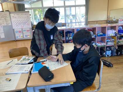 算数のテストが控えています。分からないところを教え合いながら復習をしました。