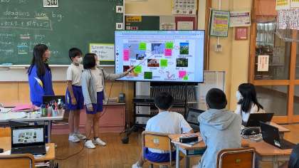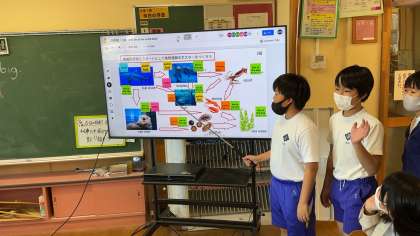 外国語科の学習で食物連鎖についてまとめました。一人一役を決め、全員で発表をすることができました。