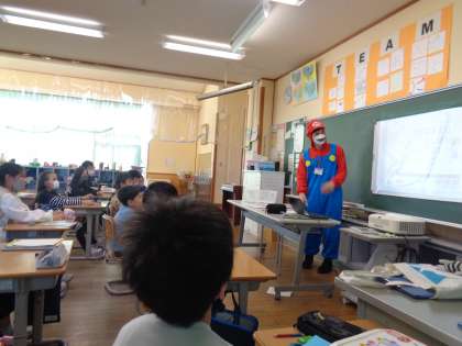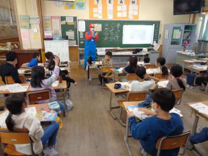 外国語活動では、ハロウィンということでALTの先生が仮装をして登場しました。その後、アルファベットを用いたすごろくや、ハロウィンにちなんだビンゴゲームを行いました。