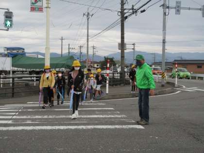 今日から11月です。毎月1日の交通安全指導のために、PTAの方々がたくさん通学路に立ってくださっていました。