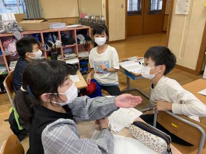 算数の学習の中で出た「どういうこと?」を近くの友達と話しました。「ああそういうことね」「分かってくれてよかった」教えた側も聴いていた側も納得して次に進むことができました。
