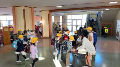 スタンプラリーのやり方にも慣れ、進んであいさつする子供たちが増えてきました。中には、スタンプをもらった後も繰り返し挨拶をしている子供もいました。