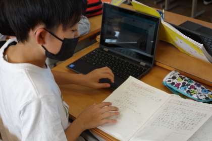 誰がどのように台地に水を引いたのか、調べ学習を行いました。調べたことを持ち寄り、スライドにまとめています。インプットしたことをアウトプットすることで、確かな知識として身についていきます。