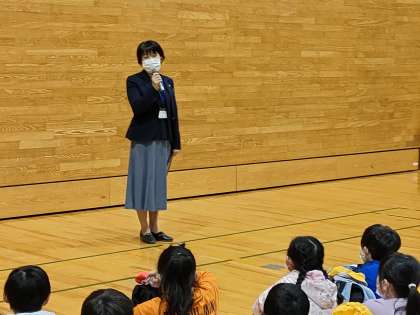 低学年で、立山青少年自然の家に向かいます。雨のため、登山はなくなりましたが、館内で活動します。校長先生のお話にあったように、自然をそばに感じながら、活動してきます。