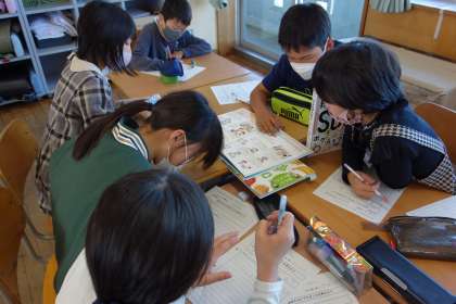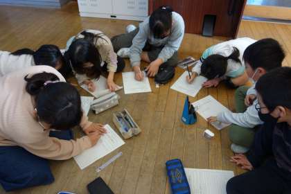 環境問題の現状を知った子供たち。自分たちにできることはないか、チームごとに話し合いました。