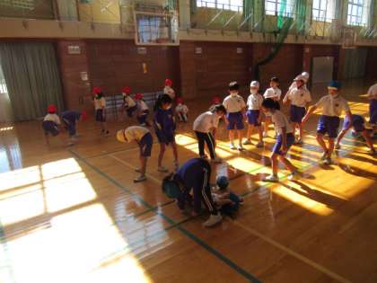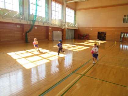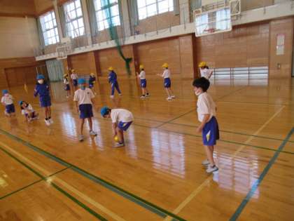 団ごとに列を作ってボールを渡したり、リレーでボールを渡したりしました。