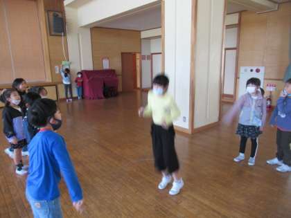 今日の業間に運動係の主催で縄跳び集会をしました。