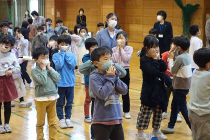 今日は、ゲンキッズハーモニーで今月の歌「エール!!」を歌いました。音楽科担当の先生の指導のもと、分かりやすく楽しく歌唱練習を行いました。