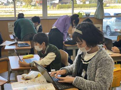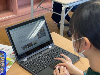 家庭科の学習で、味噌汁の話をしていたときに「みそだけじゃなくで出汁を入れるんだよ」と発言した子がいました。そこから出汁についてクロームブックで調べ、日本の伝統的な食事の1つである味噌汁について理解を深めました。