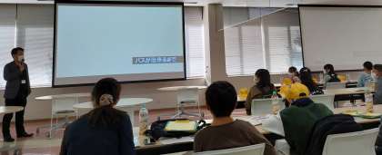 まずは、DVDを見て、バスの製造過程を学びました。