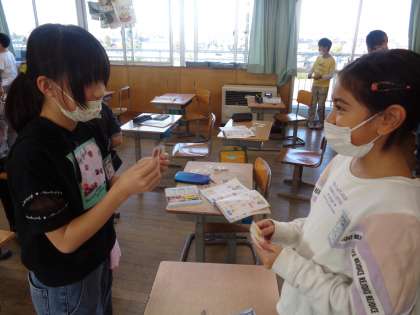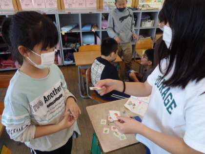 外国語では、今回習ったフルーツの単語を使って