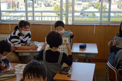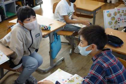 外国語活動の学習の様子です。ゲームを通して、友達に尋ねる表現に慣れ親しみました。