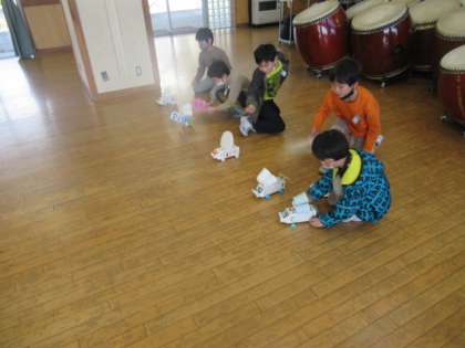 今日は、前回、友達のおもちゃが当たったところので、話合いで遊ぶ場所を決めてから活動しました。