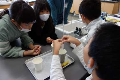 空気を冷やしたときと温めたときの体積の変化を実験で確かめました。水の位置が変化した瞬間を見て、驚きがありました。