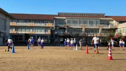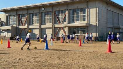 パス練習からドリブル練習へ。少しずつ技能を高めていきます。