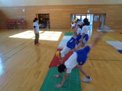 富山市体育協会スポーツ指導員の先生に、マット運動を指導していただきました。