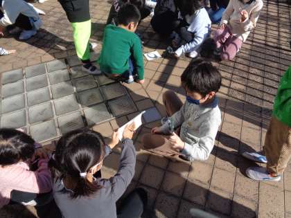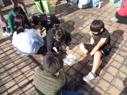 理科の授業では、、虫眼鏡で光を集めるとどうなるのか実験しました。集めた光を小さくしてしばらく紙に当てていると、煙をあげました。「こげた!」と声をあげて喜んでいました。安全に気をつけて実験をすすめることができました。