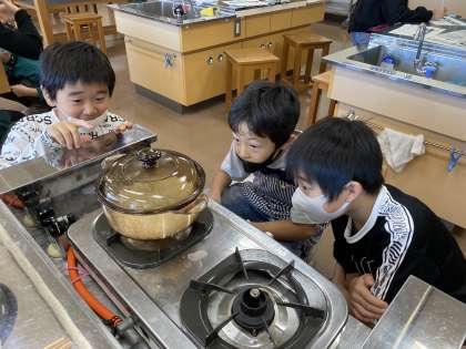 普段、お米は炊飯器で炊いている家庭が多いのではないでしょうか。日本で昔から食べられてきたお米を今回は鍋で炊きました。普段見ることのない米が炊きあがるまでの様子をじっくり観察しました。