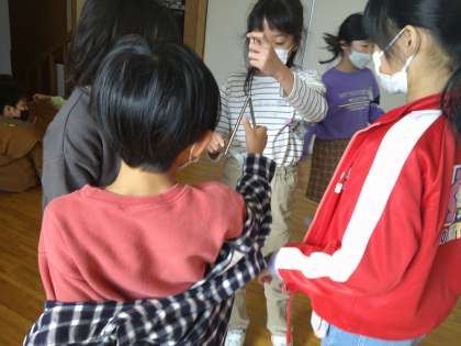 今日は音楽室で理科をしました。トライアングルやシンバル、大太鼓を鳴らし、音がなるときは物がふるえるということを学習しました。音を大きくするとふるえ方も大きくなることに驚いた様子でした。