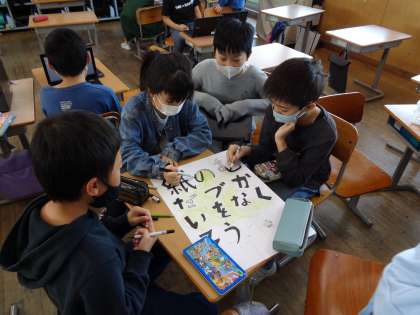 総合では、引き続きチームに分かれて環境問題についての作業をしています。