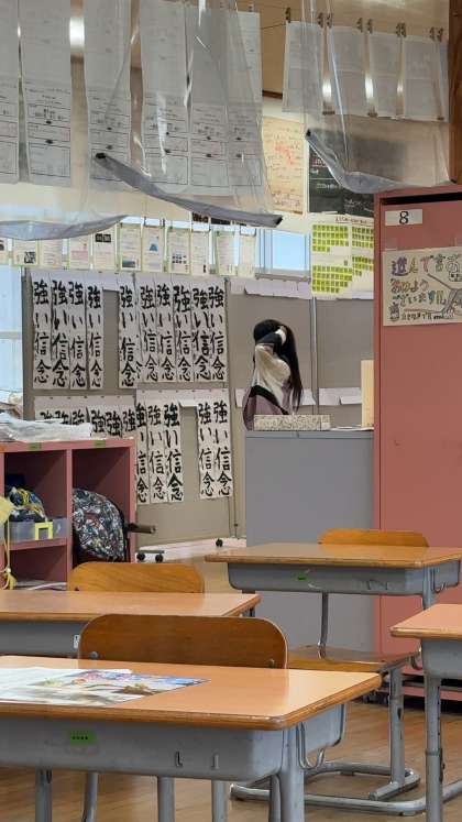 ワークスペースに掲示した書き初めの作品。 友達の字を見ながら、学びます。
