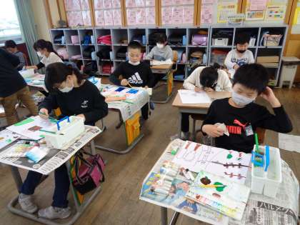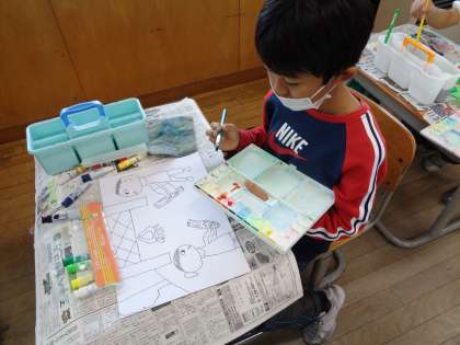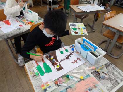 図工では、宿泊学習で心に残った瞬間を描いています。