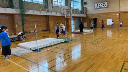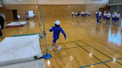 どうしたら高く跳べるか、一人一人が考えながら挑戦しています。