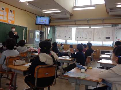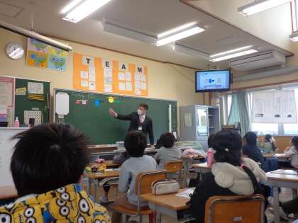 リズムに合わせて、形の学習をしました。「Blak Cirle」や「Pink square」と上手に発音することができました。