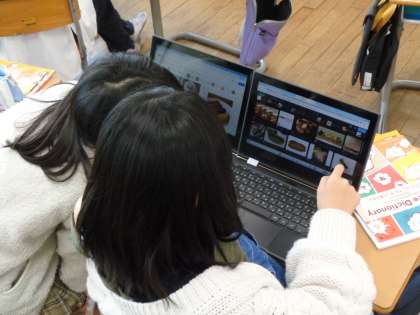 ペアで国を一つ選び、その国の料理を調べてメニューを作っています。
