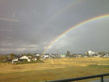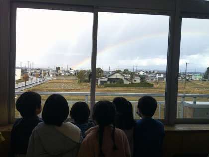 「あっ、虹だ!」そんな声が聞こえたら、子供たちは、みんな窓際に集まり、「きれい」「こんな濃い色の虹、初めて見た」など、言い合っていました。今日は、何回もきれいな大きな虹を見ることができました。