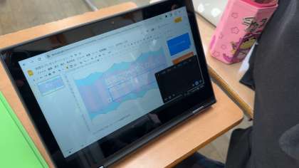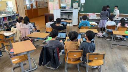 調べたことをスライドにまとめています。仕上がりが楽しみです。