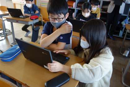 答える相手のことを考えながら、相手意識をもって作りました。ICT支援員さんには、裏技もたくさん教えていただきました。