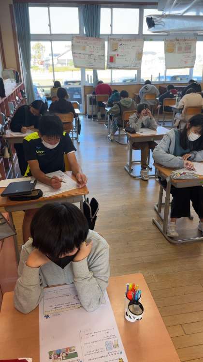 算数科のテストに挑戦。じっくり考えて答えを出します。
