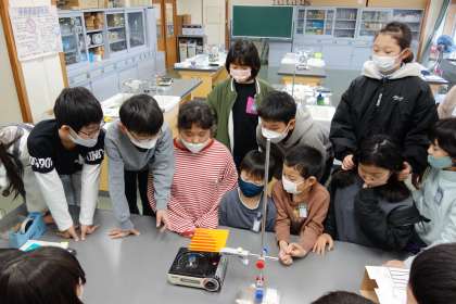 前回に引き続き、今日も金属の温まり方を確かめる実験を行いました。熱の伝わる様子が一目で分かり、驚く子供たちでした。
