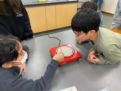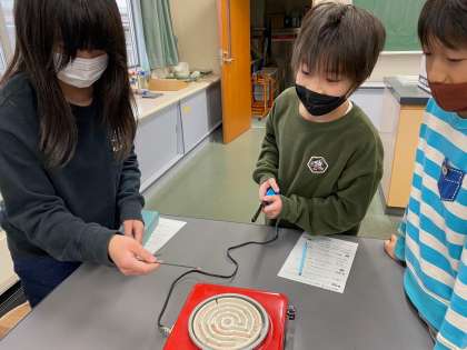 今日は、電熱器と線香を使って、煙がどのように動くのかを実験しました。