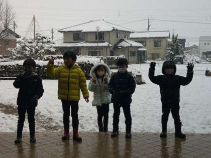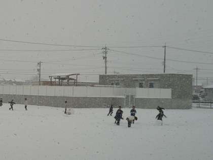 休み時間になると、寒さなんか関係ない1年生の子供たちは、グラウンドへ出て雪遊びを楽しみました。