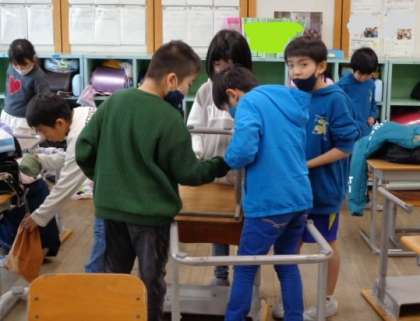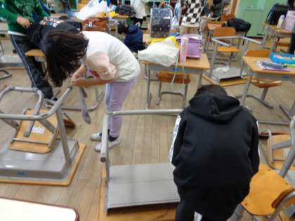 5時間目に、大掃除をし、机や椅子の裏の誇りをぞうきんできれいにとりました。友達と協力しながら、2学期の汚れを落とし、新年に向けて気持ちを新たにしました。