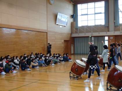 6年生の和太鼓「大空」「大河」の演奏を鑑賞させてもらいました。