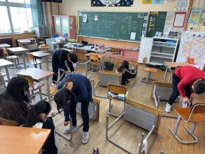 お世話になった教室をみんなで掃除しました。残り3ヶ月間の学校生活もよろしくお願いします。