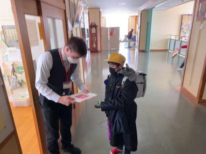 子供たちが作った日本文化を紹介するパンフレットを、いつもお世話になっている先生に渡しました。