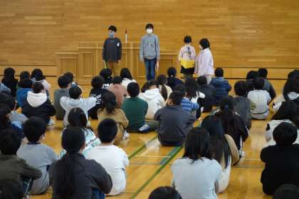 2学期の終業式が行われました。校長先生や代表児童の話を聞き、2学期を振り返りました。