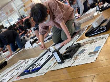練習の成果を発揮できるよう集中して一画一画と筆を運ばせていました。