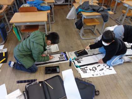 新学期が始まり、最初の行事である書初大会を行いました。ずっと練習してきた成果を一人一人が発揮できるよう集中して取り組んでいました。