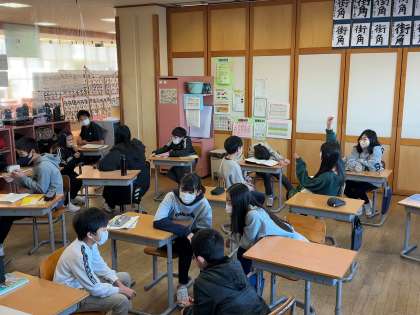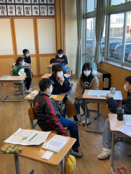 冬休み中の思い出を3つ紹介。一つは嘘。嘘を見抜くゲームをしながら、冬休み中の思い出を紹介し合いました。
