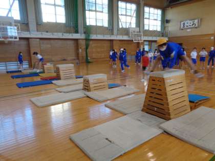 様々な段数の跳び箱を用意して、自分の能力に合わせて練習しました。