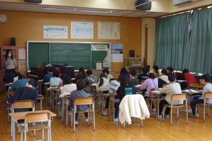 3学期初回の音楽の学習です。音楽担当の先生と真剣に学習を行っていました。